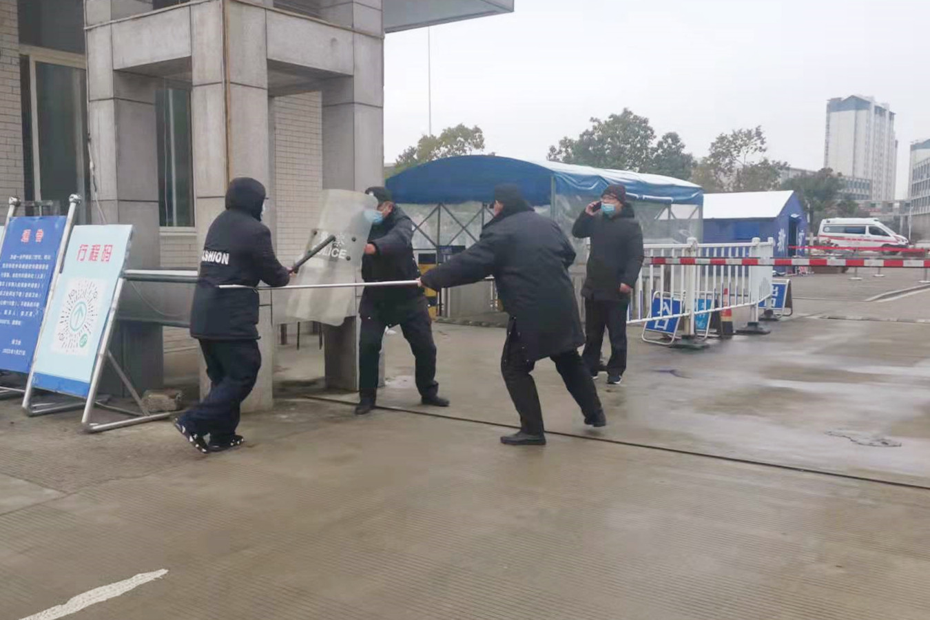 2月18日上午,校保卫处、恒杰保安公司与洪武派出所在凤阳校区西区东大门联合开展了防暴恐演练。