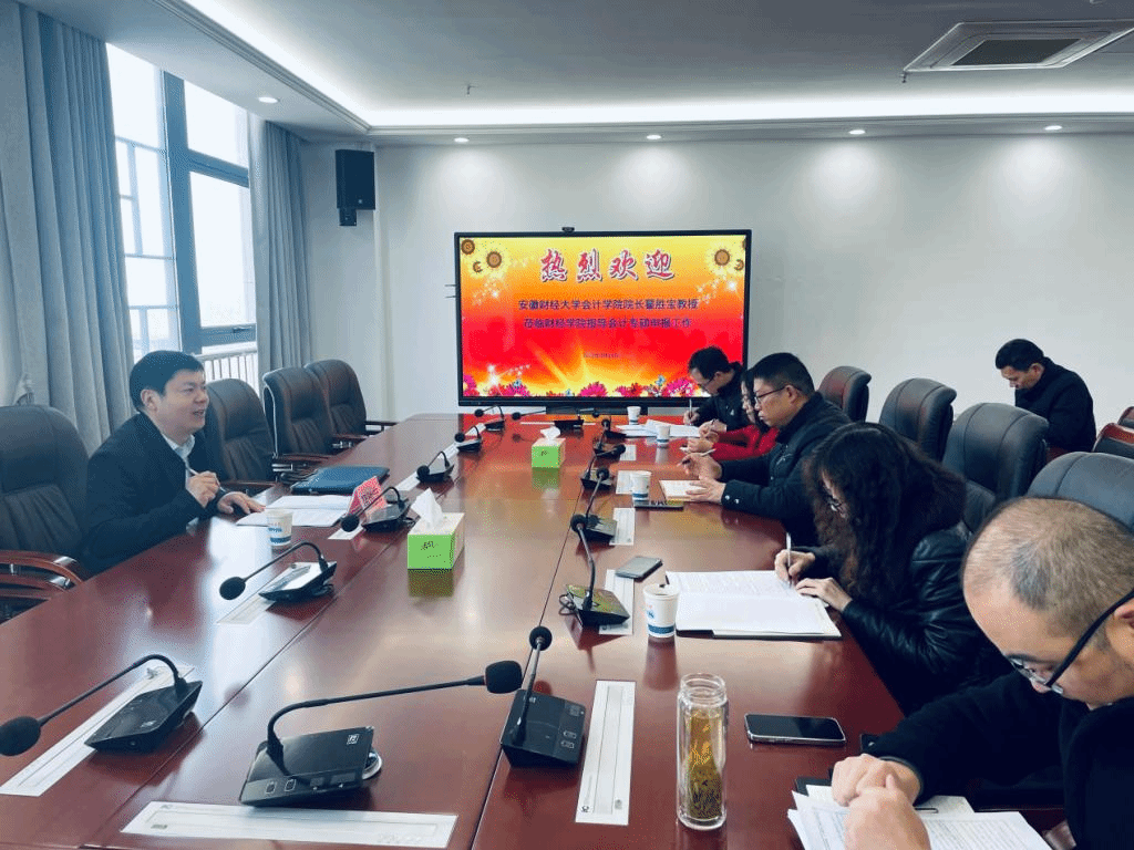 2022年3月24日,应财经学院邀请,安徽财经大学会计学院院长翟胜宝教授莅临我院指导会计专硕申报工作。财经学院党政领导班子成员,财管系、会计系的骨干教师参加会议,会议由财经学院院长、会计专硕申报领导小组组长郝世绵主持。