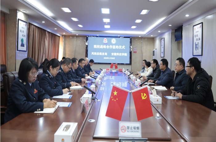 会上,双方表示将以合作签约为契机,不断建立完善定期联系沟通、多种形式合作、资源成果共享等机制,推动理论研究、税收实务和人才培养等方面取得丰硕成果,并积极探索学校与地方税务部门协同发展的新型合作模式,努力打造“安科财经+凤阳税务”合作品牌。
