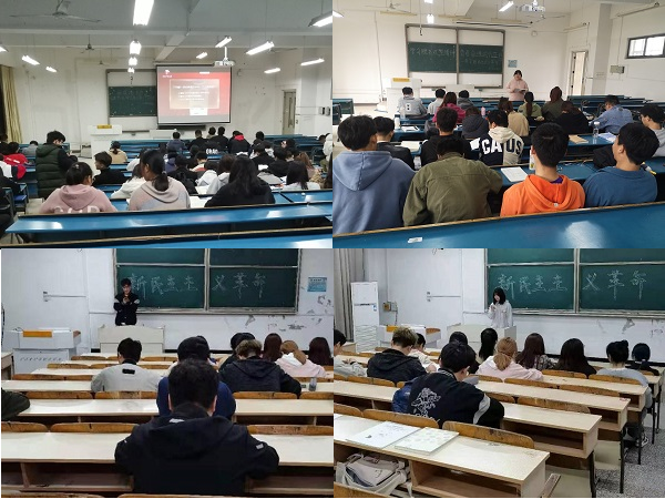 4月9日,动物科学193班团支书刘倩带领团员青年在新知楼A106进行新民主主义革命精神学习,在活动中,团员青年学习了新民主主义革命的背景、历史意义,革命精神,认识其对当今社会的重大意义,会后,同学们纷纷表示要不断增强责任感与使命感,传承党的红色基因与革命精神。