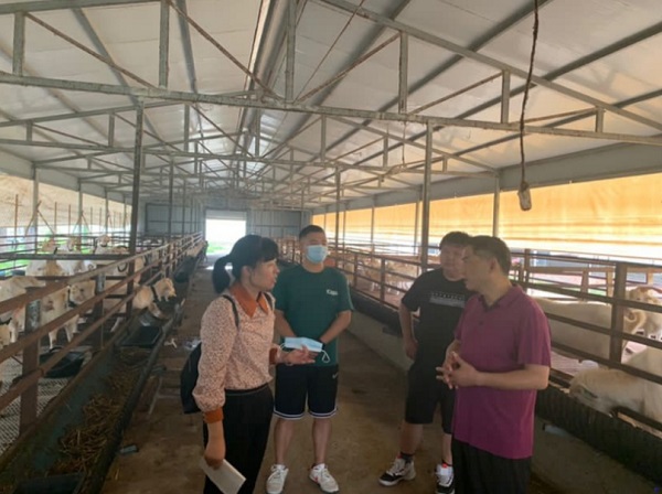 7月11日上午,“夏日下乡,知农兴农”三下乡团队第一站来到位于高塘乡郭桥村前进村的恒凯牧业有限公司,实地走访调研该公司和当地山羊养植情况。实践团队的成员,走进公司,与工作人员一起劳作及交谈,详细了解绵羊在当地的发展、同期发情技术的营养及对农民的增收情况。随后,公司负责人张经理带大家参观能繁母羊和与育肥羊基地,并共同操作母羊发情鉴定和胚胎观察,团队成员们纷纷表示:要不断加强学习,将科研成果转化为生产力,发挥科技对地方经济的促进作用,提高企业的技术水平和创新能力,同时也加速高校科研成果的转化,提升高校服务地方经济建设水平,助力乡村振兴。