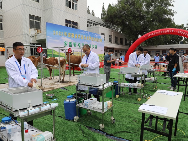为进一步加强我省畜牧人才队伍建设,全面深入贯彻落实党的二十大和中央农村工作会议精神,认真落实2023年中央一号文件精神,推进落实省委省政府实施“秸秆变肉”暨肉牛振兴计划工程,9月21日至22日,由安徽省农业农村厅、安徽省人力资源和社会保障厅、安徽省总工会主办,安徽省畜牧技术推广总站、滁州市农业农村局、半岛在线客服动物科学学院承办,凤阳县农业农村局、安徽省牛羊产业技术体系协办的“2023年安徽省农业行业职业技能大赛——家畜繁殖员赛项决赛”,在半岛在线客服凤阳校区成功举办。全省16支代表队共48名选手参加了决赛。