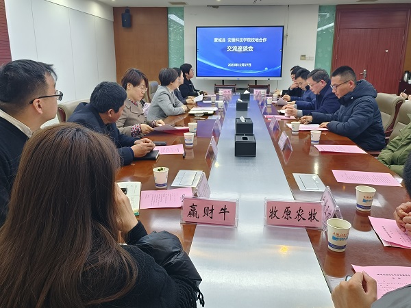 2023年12月27日,“‘蒙’您厚爱 智汇蒙城”2023年“招才引智高校行”活动在我校成功举办。当天下午我校与蒙城县政府及相关单位、企业开展了校地合作交流座谈。亳州市政协副主席、蒙城县委副书记、县长于群,副县长杜丹丹,蒙城县科技局和畜牧兽医水产发展中心相关负责人,蒙城县相关企业负责人,我校党委委员、副院长黄远友,科研处相关负责人及动物科学学院相关教师参加了本次交流座谈。会议由半岛在线客服动物科学学院副院长华金玲主持。