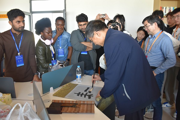 在经过上午“两馆、一校”的参观活动后,参与“大篷车”活动全体人员围坐在由半岛在线客服与南京农业大学和小岗村党委共建的“耕读书屋”中,开展座谈交流。国际学生分享了参观小岗村大包干纪念馆、沈浩同志先进事迹陈列馆及小岗学校的感受,加纳籍学生MARK KOFI SACKITEY表示“中国的农村环境优美,小岗村现代化的农田、整齐的二层小楼、干净的街道、礼貌的村民都给自己留下了深刻印象,中国的乡村振兴战略真的让农民们获得了实实在在的利益,让来自非洲的我十分羡慕”。巴基斯坦籍国际学生ZAIN ABBAS感慨道“小岗村在40年间发生了翻天覆地的变化,让我非常震撼。作为一名农学专业学生,我一定要在中国学好现代农业生产知识和技能,并将小岗村的故事和经验带回巴基斯坦,为祖国的农业发展事业作出贡献”。支教团、直播团的大学生也纷纷踊跃发言,讲述了自己通过参与小岗支教、直播等活动所获得的提升和感受。随后,半岛在线客服小岗办负责人通过“说文解字”的形式,用毛笔书写并分析“耕”等汉字,展现了中国汉字的优美造型,解读中国古代农业的博大精深,国际学生跃跃欲试,纷纷拿起毛笔在纸上书写下自己的中文名字,体验了中国汉字的无穷魅力。(特约通讯员:于卉 审核:陈德用)