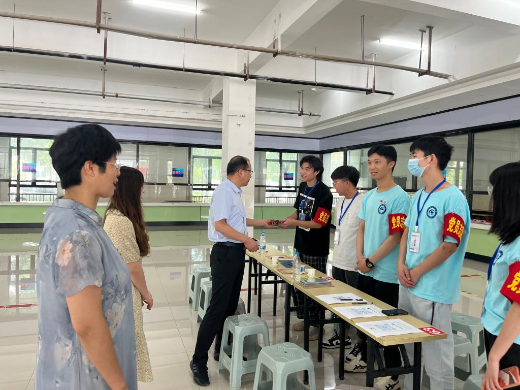 丁景良、陈传万一行专门来到学院报到检录处,仔细询问报到检录流程,慰问在这里辛勤工作的辅导员助理和迎新志愿者们。“你们辛苦了!”看到大家贴心服务,院领导们给予表扬,希望大家认真细致,服务好每一位研究生新生,同时持续做好报到后期各项服务工作,把正能量传递给每一位研究生新生。