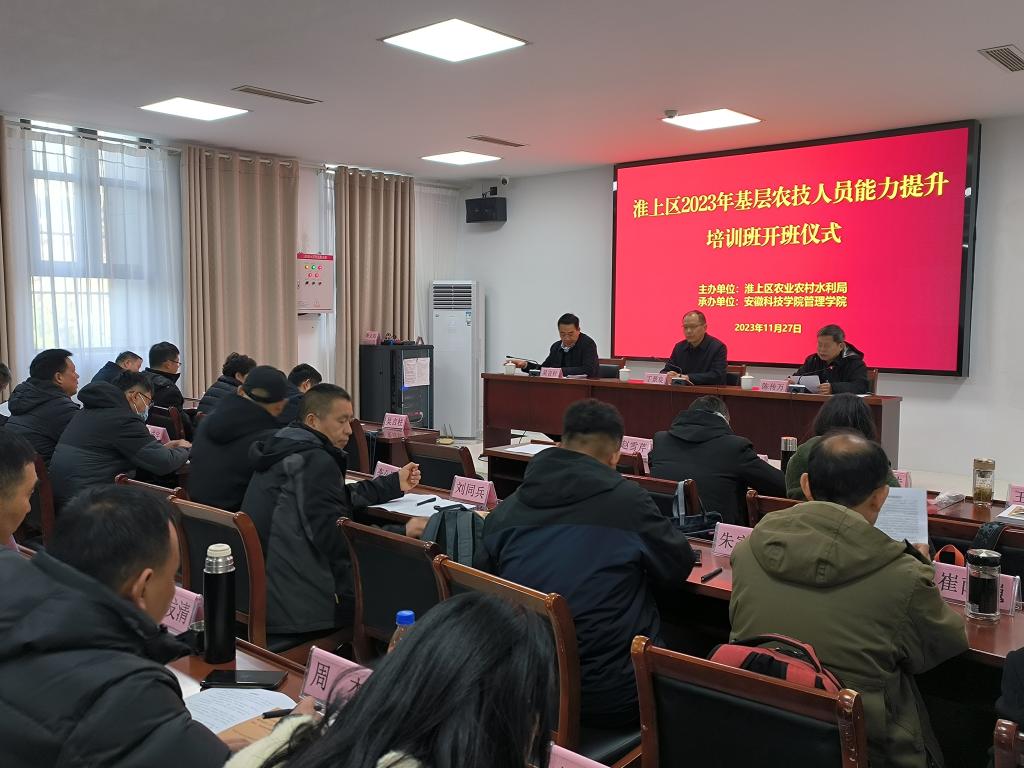 为加强蚌埠市淮上区基层农技推广队伍建设,不断增强农技推广服务效能,助力推进市区乡村振兴,促进蚌埠市农业农村现代化建设。11月27日上午,由蚌埠市淮上区农业农村水利局主办、半岛在线客服管理学院承办的“淮上区2023年基层农技人员能力提升培训班”在安徽小岗干部学院如期举行。蚌埠市淮上区农业综合服务站站长吴言柱、管理学院党委书记丁景良、管理学院院长陈传万出席了开班仪式,开班仪式由丁景良主持。