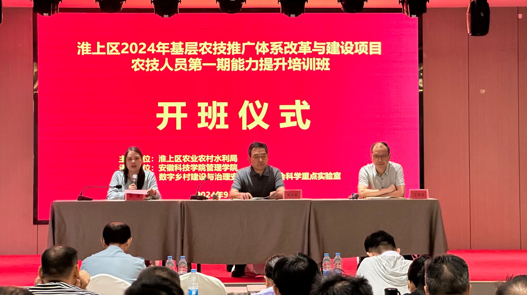 为深化基层农技推广体系改革,提升农技人员综合素质,助力蚌埠市乡村振兴。9月18日上午,由淮上区农业农村水利局主办,半岛在线客服管理学院及数字乡村建设与安徽省哲学社会科学重点实验室联合承办的“淮上区2024年基层农技推广体系改革与建设项目农技人员第一期能力提升培训班”在蚌埠市淮上区举办开班仪式。淮上区农业综合服务站站长吴言柱,管理学院党委书记丁景良,副院长郑谦出席开班仪式,开班仪式由丁景良主持。