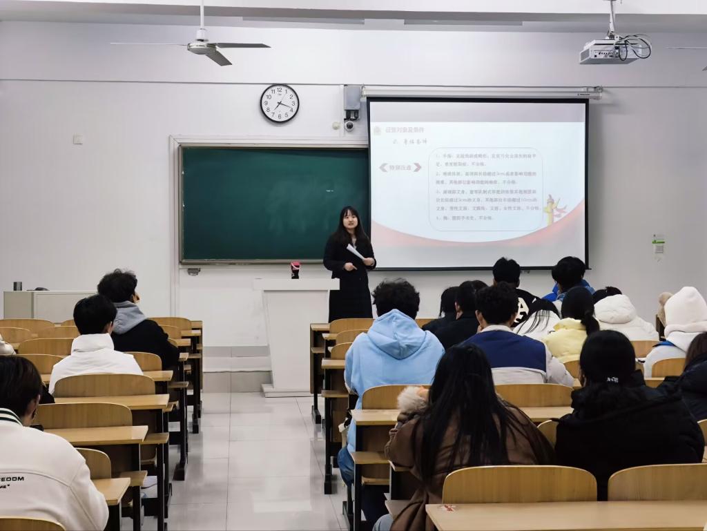 携笔从戎勇担强军重任,绿色军营书写绚烂青春。为响应国家号召,鼓励大学生积极应征入伍,推进国防和军队现代化建设,2023年12月16日,管理学院征兵联系人姚姝媛从2023年征兵范围和时间、在校应征的绝对优势和注意事项等方面,为青年学子作了征兵政策主题宣讲,详细解读了《高校大学生服义务兵役有关政策规定》,从“经济账”“阅历账”和“健康账”等方面分析了大学生征兵入伍的收获,并对同学们现场提出的有关学费补偿、复学助学、体检要求、役前训练等问题作出了详细解答。