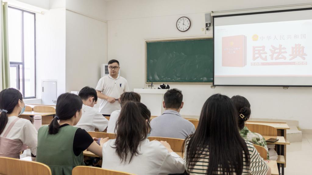 为营造良好的法治氛围,加强大学生普法教育工作,5月25日下午,管理学院举办“《中华人民共和国民法典》及部分法律问题解答”普法宣传讲座,21级部分同学参加讲座。本次普法讲座由校法治科科长、管理学院党政办公室主任李永鹏主持。