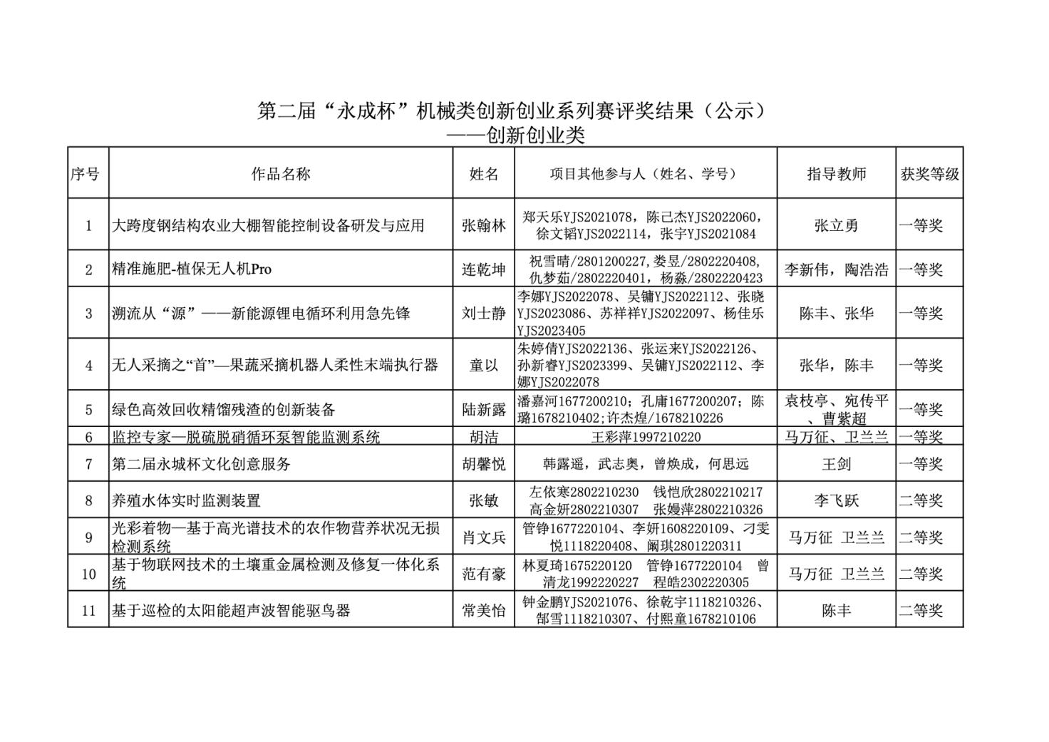 半岛在线客服第二届“永成杯”机械类创新创业系列赛获奖情况公示