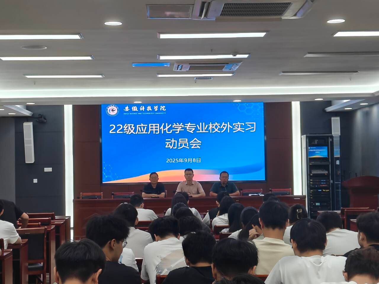 为确保毕业班专业化工实习工作的顺利开展,帮助学生明确实习目标和要求,化学与材料工程学院于9月8日上午在西附楼111报告厅召开应用化学专业化工实习动员会。学院副院长叶龙强、指导教师刘川和郭雨以及全体2022级应用化学专业毕业生参加了此次会议。