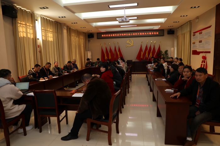 参与活动师生在小岗村党员活动室接受“数字小岗信息采集”业务培训,培训会议由小岗村党委副书记严永兵主持。