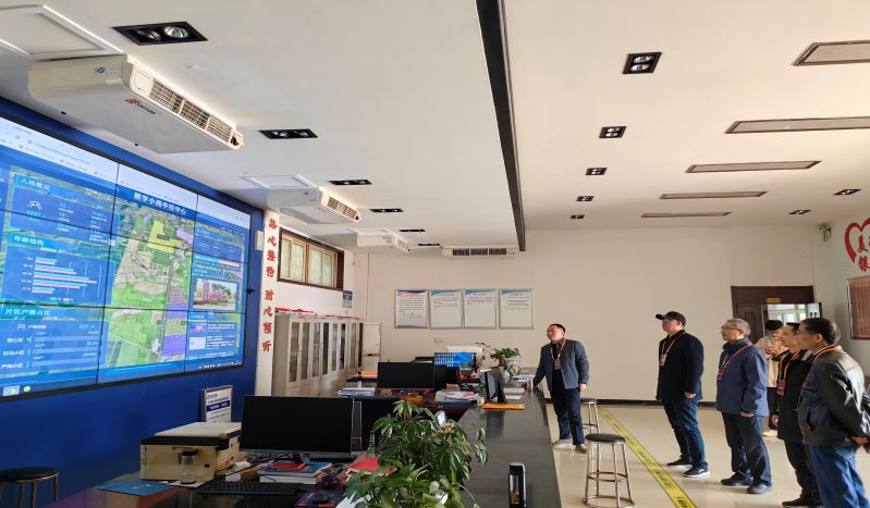 在小岗村党群服务中心,信息与网络工程学院院长余宏杰、机关党委组织员张敬强、图书馆副馆长王玉林,通过小岗村党委副书记严永兵的演示介绍,了解了小岗村数字中控中心日常运行维护情况。