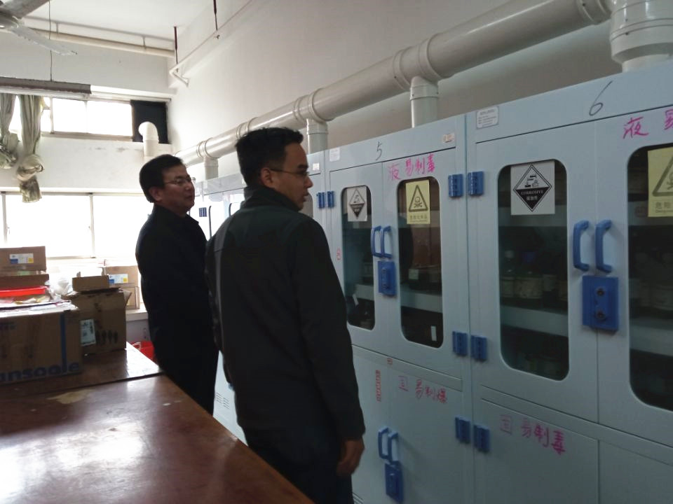 为有效落实安徽省教育厅关于全省教育系统危险化学品安全风险集中治理实施方案的通知及《半岛在线客服关于开展校园安全隐患排查和专项检查工作的通知》等文件精神,杜绝危险化学品管理安全事故发生。3月18日下午,党委委员、副院长黄友锐深入学校相关学院实验室检查危险化学品安全管理情况,教务处处长赵伟峰、副处长周金星及教务处相关科室人员陪同检查。
