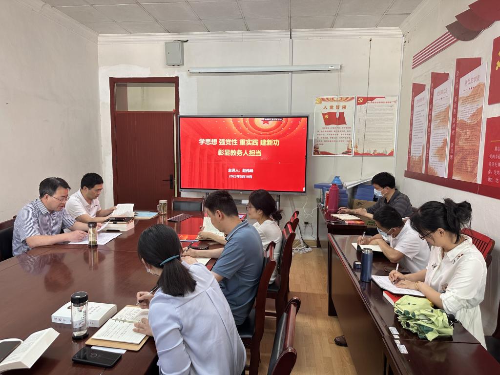 5月19日下午,教务处党支部支部书记赵伟峰为支部全体党员上了一堂题为《学思想 强党性 重实践 建新功 彰显教务人担当》的微党课。