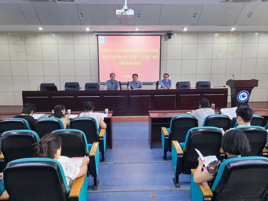 根据《安徽省教育厅关于做好安徽省2024年职业院校教师素质提高计划省级配套项目培训工作的通知》文件精神,我校2024年共计承担了9个省级配套中高职教师培训项目。9月4日上午,在校会议中心第一报告厅举办了“三教”改革研修项目“双师型”教师专题研修农林牧渔大类(农业类)专业培训班的开班仪式,继续教育学院副院长(主持工作)李忠、安徽工商职业学院原副院长汪贤武、培训班全体学员及相关工作人员参加了开班仪式。仪式由继续教育学院副院长张文国主持。