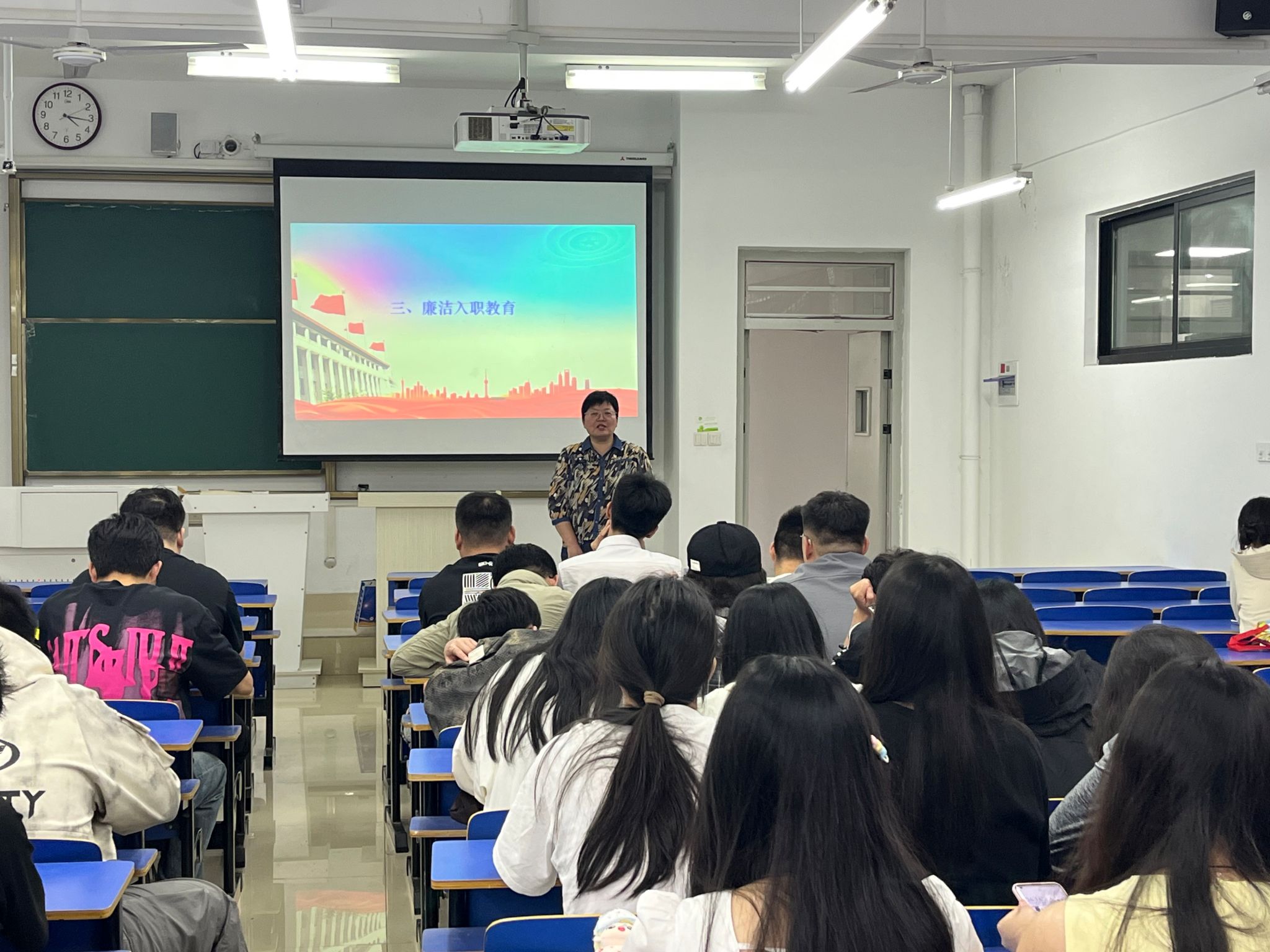 学院党委副书记谢宜勤指出廉洁入职教育是毕业教育重要内容之一,是初入职场需要扣好的“第一粒扣子”。她寄语毕业生要牢固树立纪律规矩意识,坚守廉洁从业底线,保持对职业生涯的敬畏之心;深入贯彻中央八项规定精神学习教育入脑入心、走深走实,让学习教育成果真正落到实处;弘扬和践行社会主义核心价值观,内化于心、外化于行;明晰“打铁还需自身硬”,不断强化本领担当,坚持实干为本,以清正廉洁的作风展现新时代青年学子的风采。(特约通讯员:武辉 审核:傅友福 谢宜勤)