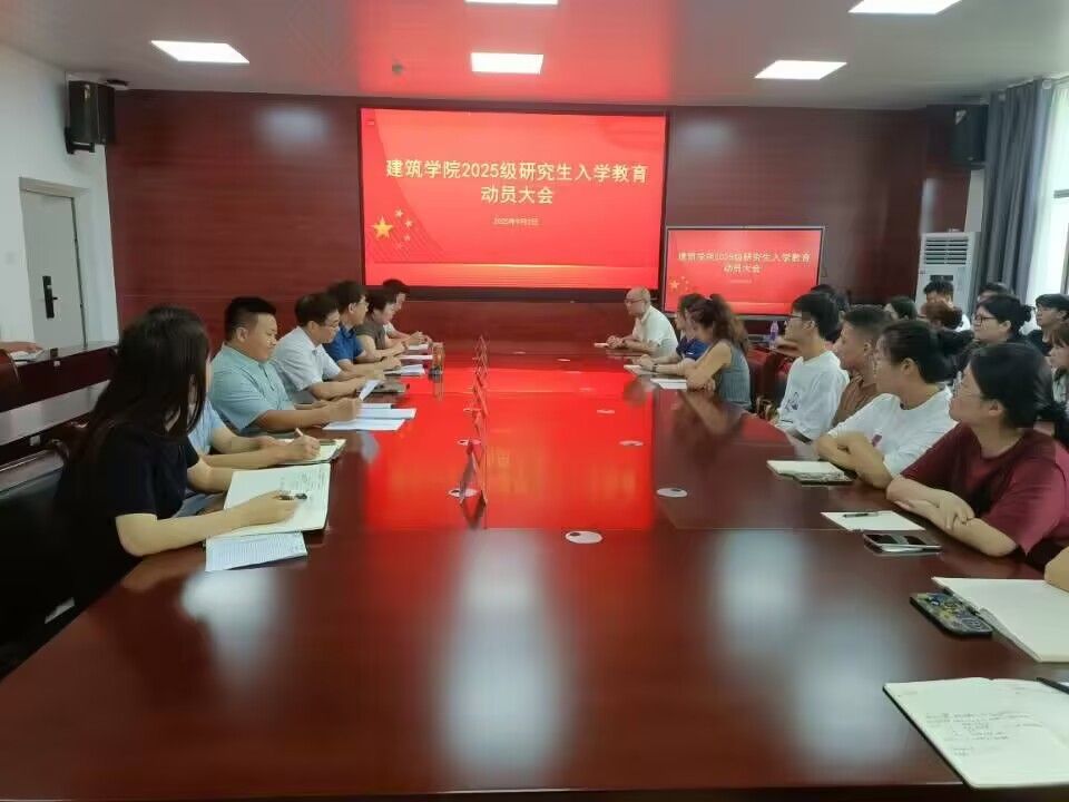 9月2日上午,建筑学院在尚行楼A301召开2025级研究生入学教育动员大会,学院党委书记傅友福、副院长吴伟东、张伟,风景园林专业教研室主任郑艺鸿、辅导员阮怀思、科研助理赵坤坤及全体2025级研究生参加本次大会,会议由谢宜勤主持。