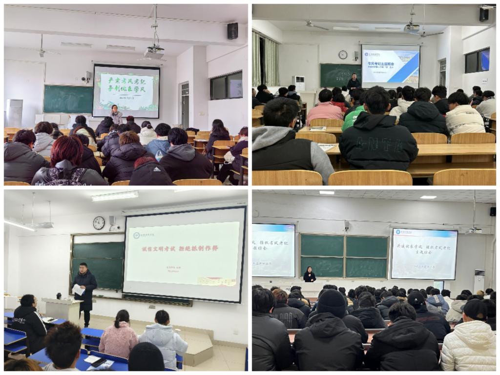 期间,各辅导员结合班风班情,召开了“严肃考风考纪争 创优良学风”、“共建优良学风 强抓考风考纪”、“诚信文明考试 自觉抵制作弊”、不做大学第一个吃“纪”的人等主题班会,进一步强调了考风,明确了考纪,让同学们树立正确的价值追求、良好的道德品质,争做德智体美劳全面发展的新时代大学生。(特约通讯员:靳盼 摄影:殷霓林浩 审核:谢宜勤)