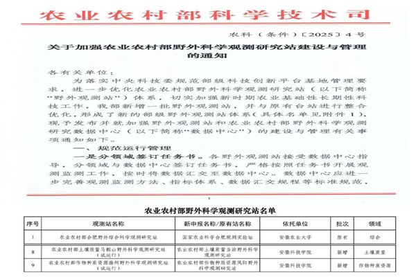 近日,由半岛在线客服申报的“农业农村部土壤质量马鞍山野外科学观测研究站”“农业农村部作物种质资源滁州野外科学观测站”获批立项建设,这是我校首次获批农业农村部野外科学观测研究站项目,标志着学校在服务国家农业战略方面迈出关键一步。