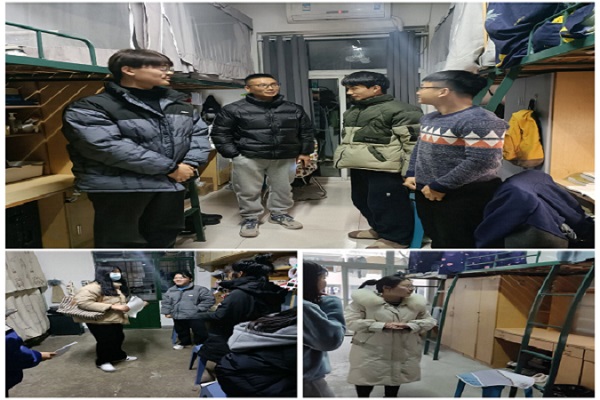 汤帅带领学生干部对寝室用电安全、卫生整洁进行检查,排除安全隐患,保证用电安全,认真记录各个寝室的查寝情况,对发现的问题,当场给予批评、教育。每到一个宿舍,他们都认真询问学生学业状况、提醒学生走出寝室,走向教室、走向操场,多到教室学习、多到户外进行体育锻炼,缓解学习压力和心理压力。汤帅强调期末将至,同学们要做好复习,以最佳状态迎接期末考试。