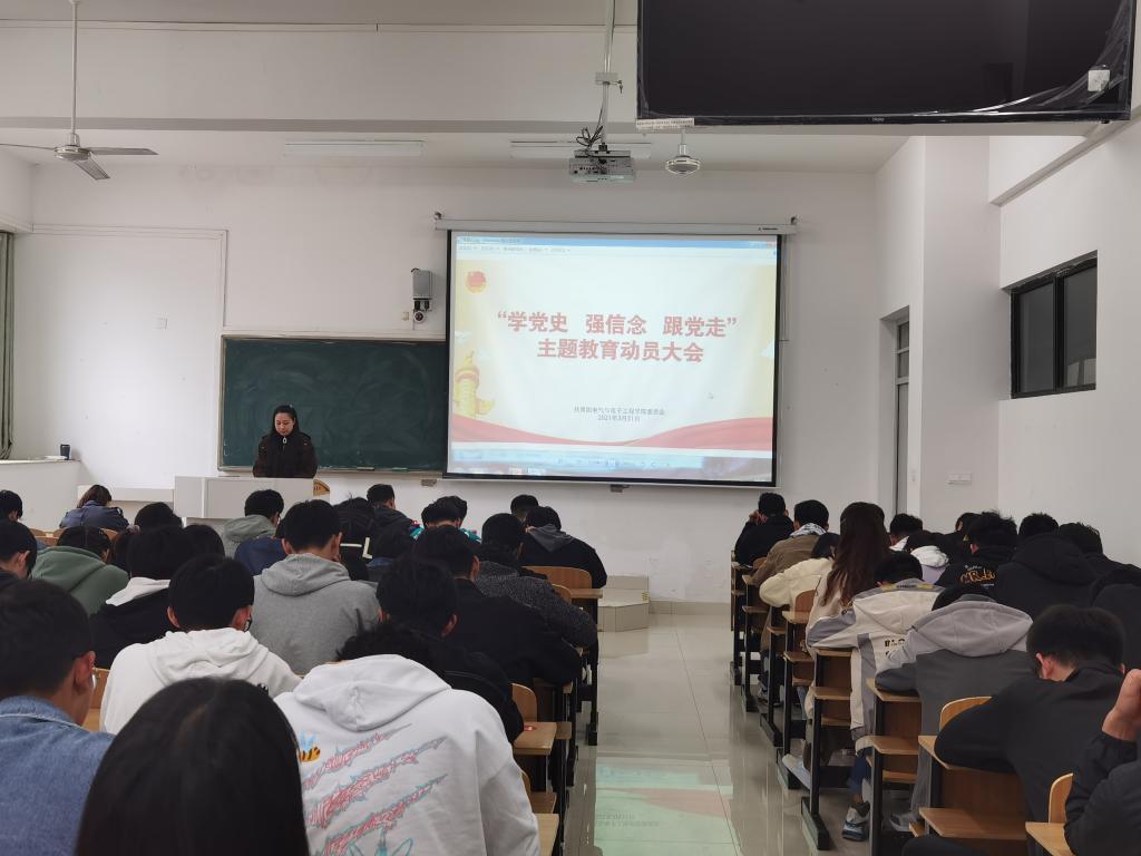 为引导广大青年团员厚植爱党、爱国、爱社会主义的情感,加深对中国特色社会主义道路的理解。3月31日下午,电气与电子工程学院在致知楼A108开展“学党史 强信念 跟党走”主题教育活动,团委书记张成孜、辅导员张深出席了会议。学院2018、2019、2020级全体团支书及团员代表参加,会议由张成孜主持。