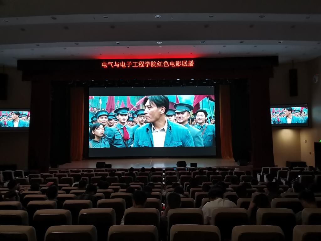 为迎接中国共产党成立一百周年,推动学院党史学习教育扎实有序开展,更加深入的开展大学生思想文化教育,让同学们重温红色岁月、缅怀革命先烈, 5月7日晚,电气与电子工程学院团委于图书馆东辅楼报告厅开展“学百年党史 汲奋进力量——红色电影展播”活动,引导和组织学生参与讨论和学习,进一步激发大学生的爱国热情,学院19级、20级全体学生参加了本次活动。
