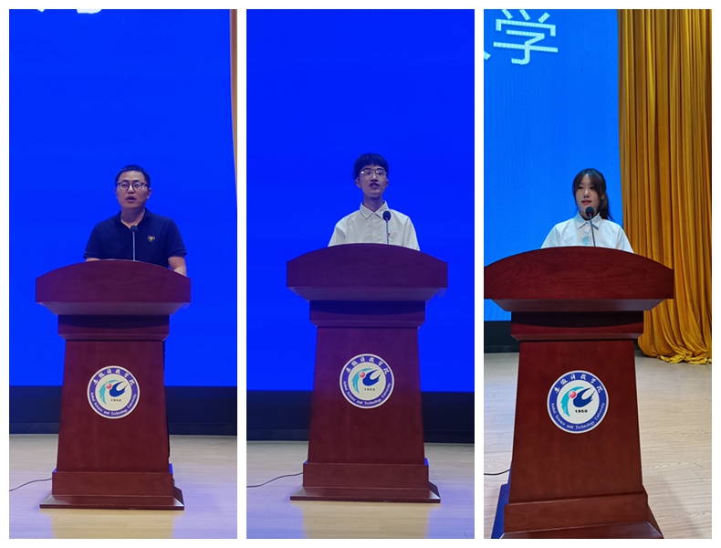 教师代表、营销系主任刘宗飞,老生代表、院学生会主席、工商管理202朱一及新生代表、工商管理222班吴妍妍分别在大会上做了发言。(特约通讯员:李永鹏 审核:丁景良)
