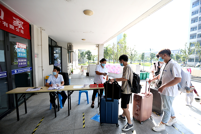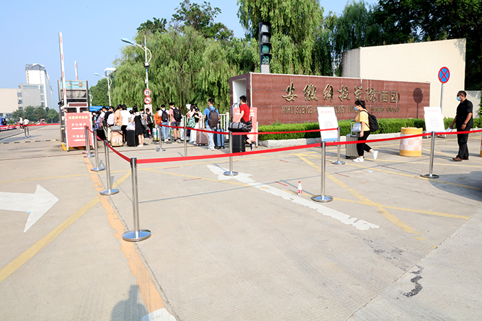 笔者了解到,本着一切为了学生的原则,学校还与蚌埠市公交公司协商,临时开通了“半岛在线客服公交专线”,便于龙湖校区同学们从蚌埠南站返校。笔者还看到,在两校区门口,公安民警、校保卫处工作人员认真维持秩序,为返校同学守护平安。在临时观察点,校医院医护人员认真细致观察,加强对同学的健康监测及医学处置。在学生报到点,各学院都撑起了遮阳帐篷,为排队报到的学子们挡住烈日的阳光,送去清凉的问候……