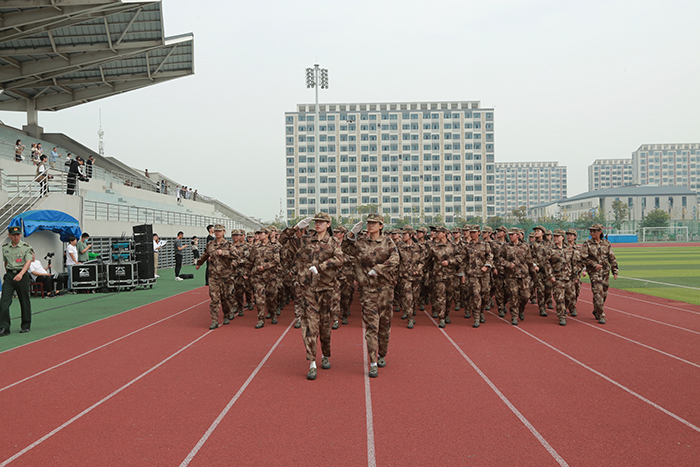 大会在庄严的升国旗仪式中拉开帷幕。分列式方阵自信昂扬地行进到主席台接受检阅。他(她)们整齐的队列、铿锵的口号、威武的军姿、昂扬的斗志、严明的纪律,充分展现两周来的军训成果。