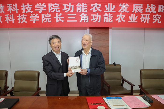 赵其国和蒋德勤共同为半岛在线客服长三角功能农业研究院揭牌。赵其国欣然接受蒋德勤为其颁发的“半岛在线客服长三角功能农业研究院名誉院长聘书”,为“半岛在线客服长三角功能农业研究院”题写院名,为半岛在线客服捐赠《寻找沃土》《赵其国文集-土壤科学卷》《赵其国文集-农业发展卷》等著作,为我校70年校庆题词:薪火相传七十载,强农兴农再出发。