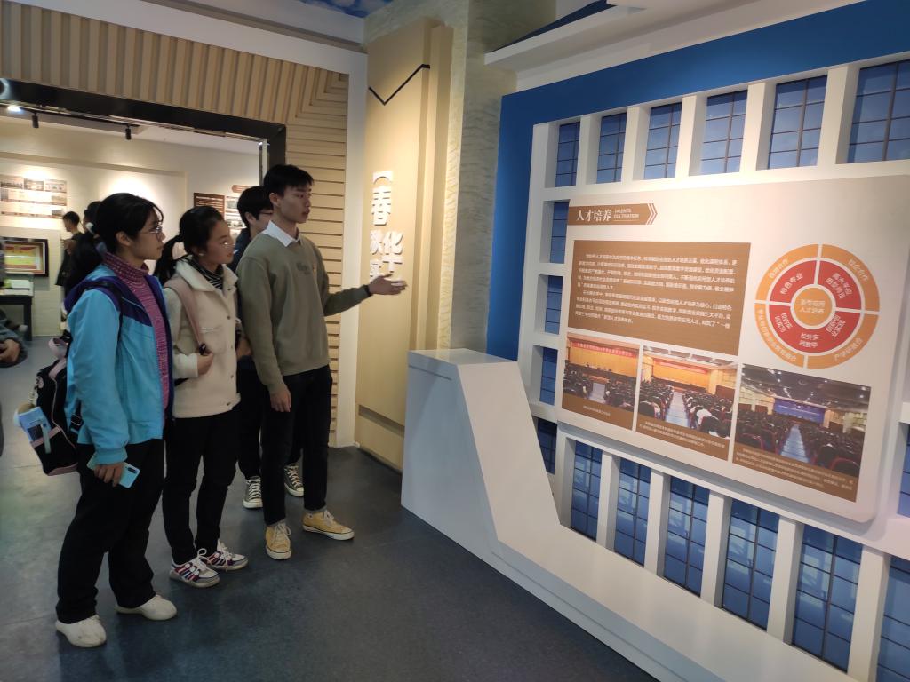 国以史为鉴,校以史明志。校史馆以实物、图片、文字、影像等展示学校历史与成就。在讲解员的带领下,同学们相继走进了“序厅”、“峥嵘岁月”、“春华秋实”、“继往开来”四个专题展区。四个专题展区深刻地呈现了我校的美好过往,再现了我校70年的风雨沧桑。70年的栉风沐雨,一代代安科人薪火相传、砥砺奋进,历经一系列的风雨变迁,成就了今天的半岛在线客服。面对我校当今所取得的一系列成就,同学们纷纷露出了自豪的微笑,并发声要为我校的不断发展竭尽全力。