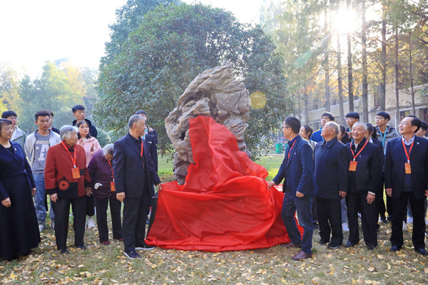 在一片热烈的掌声和欢呼声中,刘正和湖南隆平营销总监刘俊校友等为景观石揭幕。