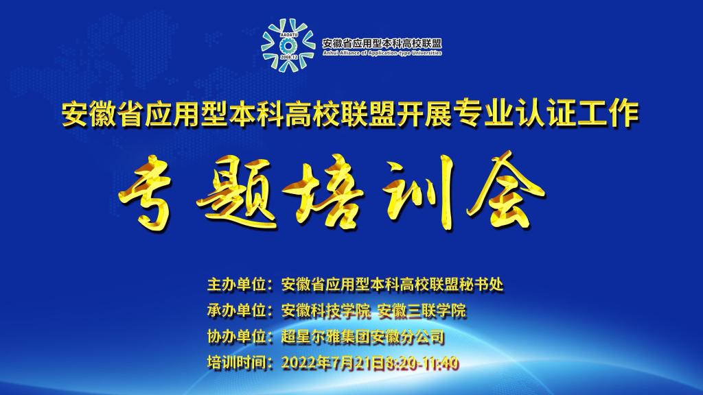 7月21日上午,由安徽省应用型本科高校联盟主办,半岛在线客服、安徽三联学院承办,超星尔雅集团安徽分公司协办的安徽省应用型本科高校联盟专业认证专题培训会在我校成功举行。本次会议采用直播形式进行线上培训,来自安徽省应用型本科联盟24所高校负责专业认证工作的职能部门负责人,相关专业负责人、骨干教师和相关工作人员近600人参会。会议由教务处处长赵伟峰主持。