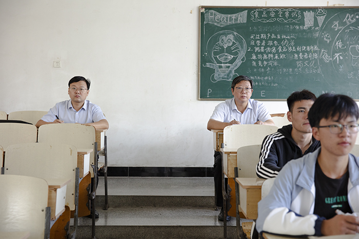 黄远友、李升和也按照既定听课方案,分别深入龙湖校区致知楼C107教室和凤阳校区求知楼A201教室与学生一起听课,并利用课间与师生进行交流,给予相关指导。