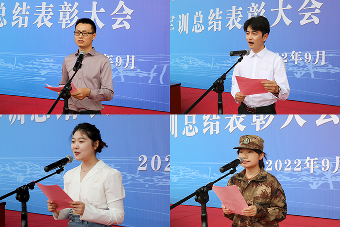 军训操演结束后,李震代表学校向陆军装甲兵学院蚌埠校区教官赠送锦旗;黄远友作军训总结讲话;李升和宣读表彰决定。与会领导为军训先进集体和先进个人代表颁发了荣誉证书并合影留念。(摄影:陈宝 审核:姚文均 编辑:董秋瑞)