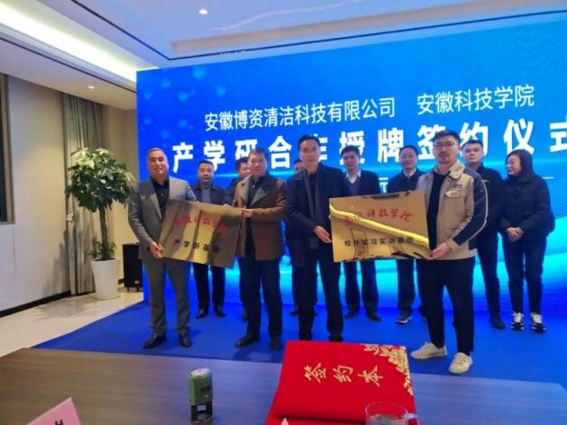 会上,李子荣代表学校与企业签订了共建“安徽博资纤维素多孔材料工程技术中心”协议、产学研合作协议、半岛在线客服实习实训基地协议、技术开发(委托)合同。王强、朱发贵、赵永滨和王汉民共同为共建工程技术中心揭牌;黄树桥和李子荣为半岛在线客服产学研基地和校外实习实训基地授牌。
