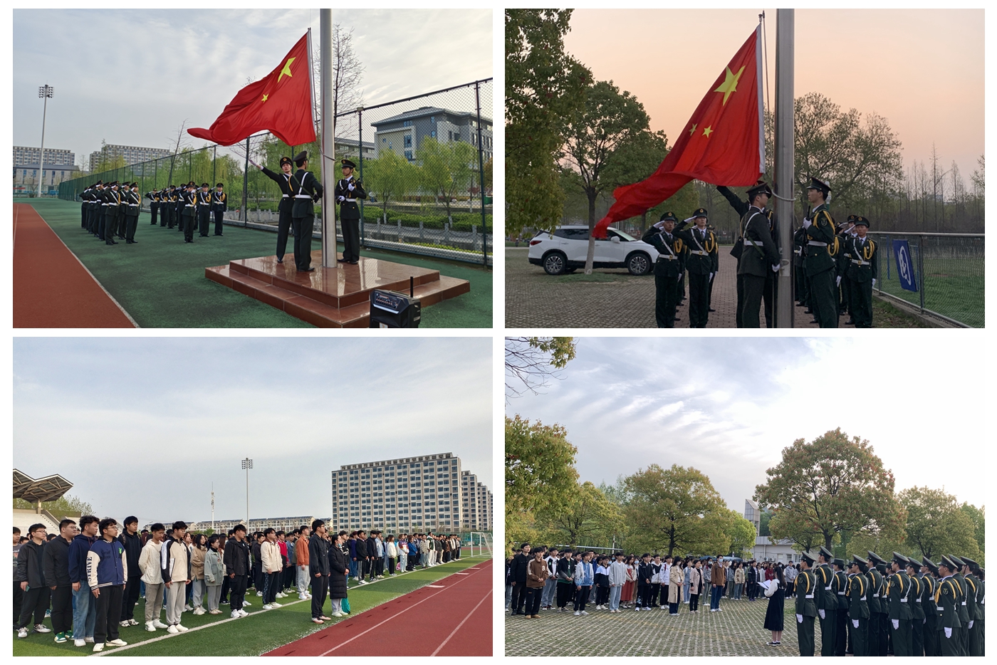 4月10日清晨,我校“国旗下的红色经典诵”活动于凤阳校区和龙湖校区顺利举行。迎着晨曦的第一缕阳光,6时40分,生命与健康科学学院和建筑学院的近千名2022级同学们排着整齐的队列来到国旗下参加升旗仪式。国旗护卫队队员迈着坚定的步伐,庄重地将国旗护送至升旗台。“升国旗,奏唱国歌!”五星红旗冉冉升起,迎风飘扬。全体师生肃立,行注目礼,深怀对祖国无限的热爱和崇高的敬意。