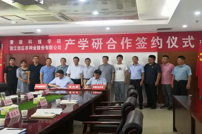 6月21日上午,我校与浙江勿忘农种业股份有限公司举行玉米新品种选育与开发协议签约仪式。校党委副书记、院长李震出席会议,党委委员、副院长李升和主持会议,公司总经理唐昌华、副总经理杨兴琦,我校科研处、农学院负责人、玉米科技创新团队负责人等参加仪式。