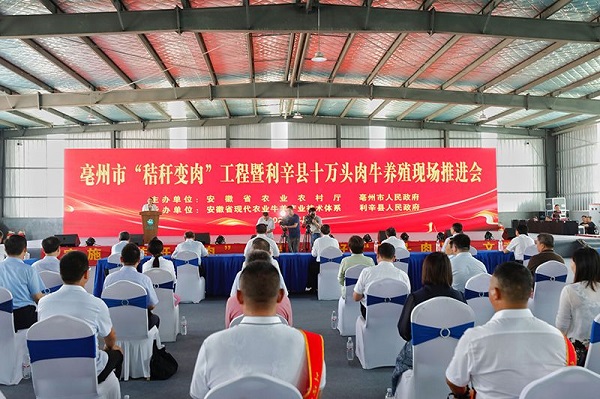 7月8日上午,由安徽省农业农村厅、亳州市人民政府主办,安徽省牛羊产业技术体系、利辛县人民政府承办的亳州市“秸秆变肉”工程暨利辛县十万头肉牛养殖现场推进会在利辛县望疃镇召开。安徽省副省长张曙光出席会议并宣布项目启动,亳州市委书记杜延安致辞。我校省牛羊产业技术体系首席专家、动物科学学院副院长华金玲教授、资源与环境学院李飞跃教授等应邀参加活动。