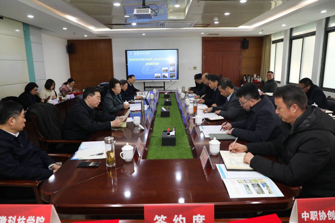 时伟在致辞中对文海英会长一行来校调研表示欢迎。他指出,学校文化底蕴深厚、办学特色鲜明;深耕内涵建设、办学成效显著;聚力特色一流、办学思路清晰。他介绍,学校高度重视毕业生就业工作,建设“两市一站”(即线下集市、线上超市、身边驿站)就业市场服务体系,取得较好成绩,毕业生就业率始终保持在省属高校前列,并在2023年全省就业工作会议上作交流发言。他强调,近年来学校与中职协互动频繁、合作深入、成果丰富,期待双方拓展更多合作领域,取得更多合作成果。