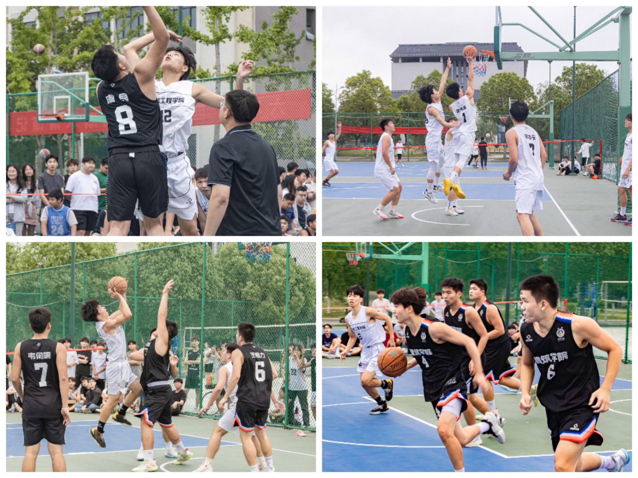 机械工程学院和建筑学院两支球队已是连续第三年在总决赛舞台相遇。机械工程学院作为传统强队只为重回巅峰,建筑学院作为前两届联赛蝉联冠军剑指三连冠。随着裁判一声哨响,建筑学院以精湛的球技和默契的团队合作夺得头筹,以9:0的成绩暂时领先。机械工程学院在比分落后的情况下稳扎稳打,互相加油打气,凭借愈挫愈勇的精神一度将比分拉平。比赛最后一节双方队员们精准卡位,默契远传,敢打敢拼精彩不断,双方多个三分球命中,精彩的抢断,比分交替上升,反复赶超,计分板牵动场下观众惊呼声、喝彩声、摇旗呐喊声声不断。比分最终定格在56:53。