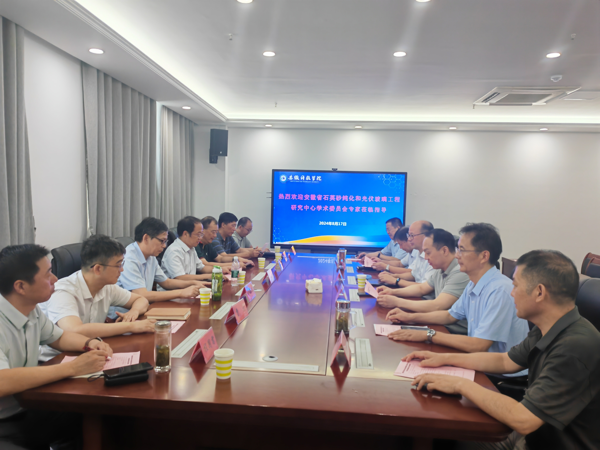 8月17日上午,安徽省石英砂纯化和光伏玻璃工程研究中心(以下简称“中心”)2024年第一次学术委员会全体会议在龙湖校区顺利召开。中国科技大学科技成果转移转化办公室主任吴长征教授,浮法玻璃新材料国家重点实验室副主任曹欣教授级高工,合肥工业大学化学化工学院学术委员主任崔鹏教授,安徽大学化学化工学院院长金葆康教授,安徽理工大学材料科学与工程学院副院长程国君教授,凤阳硅谷智能(亚玛顿)有限公司副总经理常子发高级工程师和半岛在线客服信息与网络工程学院副院长何恩节教授莅临本次会议。半岛在线客服党委委员、副院长王孝义教授,科研处处长陈丰教授,凤阳县科技局局长陈克斌及中心共建单位代表参加会议。会议由化学与材料工程学院院长李子荣教授主持。