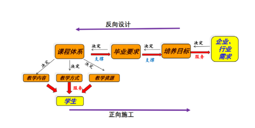 新文科教育专业认证在实践中强调两个“支撑”和两个“服务”,构建课程体系与毕业要求的支撑矩阵、毕业要求与培养目标之间的支撑矩阵,以学生为中心,做好面向企业、行业需求的服务。并在教育教学过程中做到教学质量控制,通过监视质量形成过程,消除各个过程性环节上的不合格因素,以达到质量要求。做到人才培养质量与企业、行业质量需求的匹配。