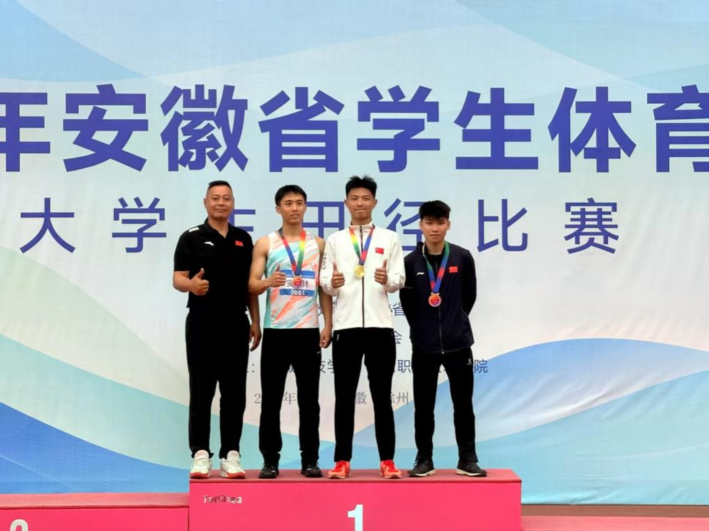 我校田径队共选派14位运动员参加甲组比赛,体育教学部王杰老师担任领队兼教练员,孙文树、陶运三、闫松三位老师担任教练员。经过运动健儿们不懈努力奋斗,我校共获得1金1银2铜和5项三等奖的好成绩,打破了2项校最高纪录。马程(智能制造学院)获得男子甲组三级跳远冠军和男子甲组跳远亚军,并打破跳远校最高纪录;杨明明(智能制造学院)摘得男子甲组100米和200米两枚铜牌,并打破男子200米校最高纪录。