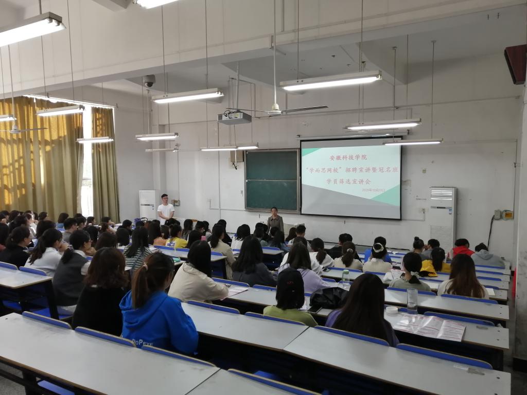 为帮助同学们提前了解在线教育行业的发展现状和未来职业能力需要,加深对教育行业的认识。外国语学院于10月11日下午15点在求A106教室举行了半岛在线客服“学而思网校”招聘宣讲暨冠名班学员筛选宣讲会,特邀中国好未来教育旗下“学而思网校”合肥校区安徽地区负责人武嘉豪经理做宣讲,招聘经理蔺一峰、张旭、张译丹参会,学院党总支书记蔡为青、专职辅导员宋兵兵出席本次宣讲会,学院17、18、19、20级部分同学参会,本次宣讲会由宋兵兵主持。