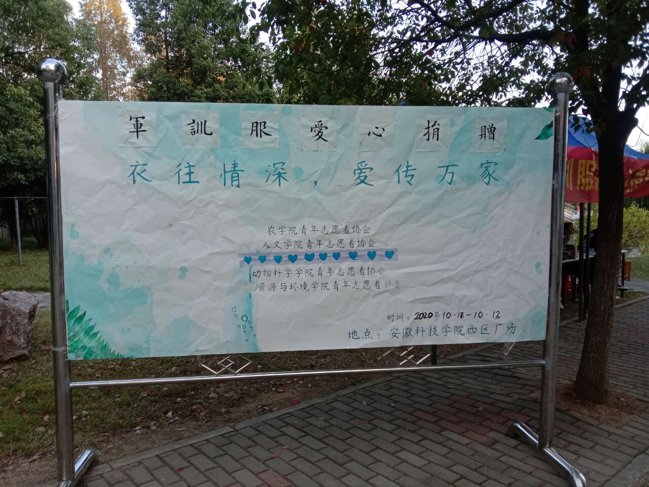 为弘扬中华民族勤俭节约的优良传统,感召“友爱、互助、奉献、进步”的志愿服务精神,培养大学生艰苦朴素的优良品质,10月10—14日,农学院青年志愿者协会联合动物科学学院、人文学院和资源与环境学院青年志愿者协会共同举办了“捐赠迷彩行,温暖千万心”的新生军训服爱心捐赠活动。