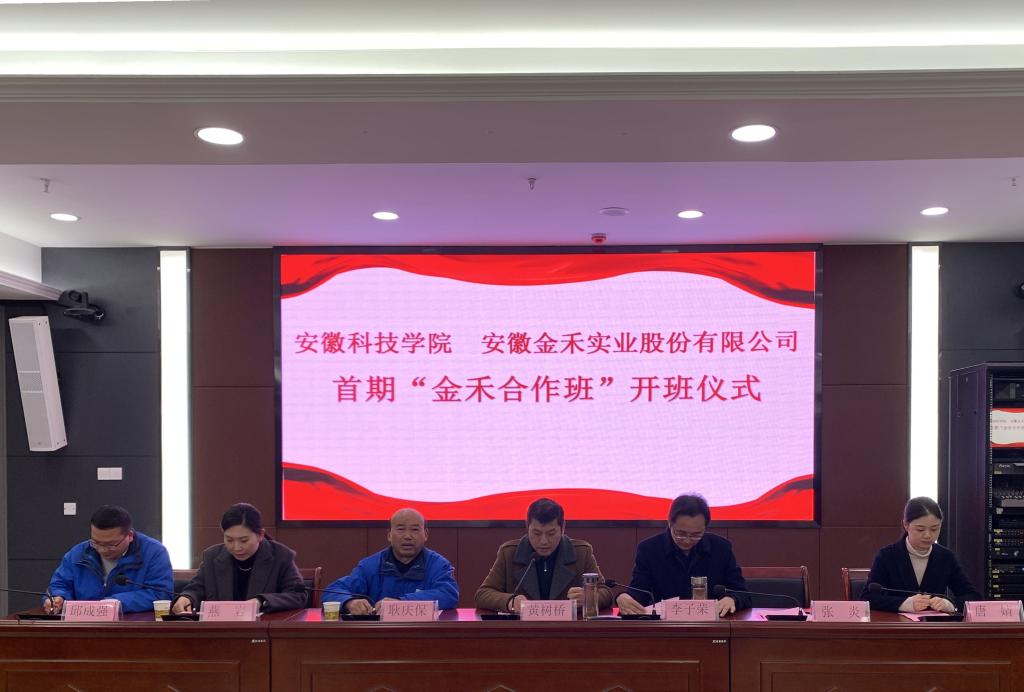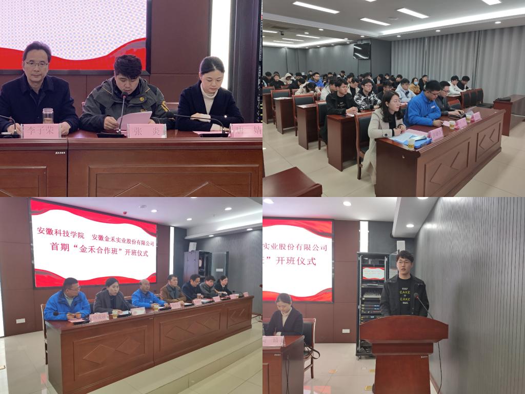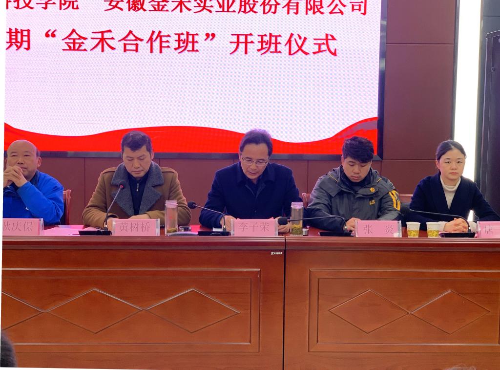 李子荣介绍了“金禾合作班”的育人目标、教学内容安排、管理架构,并就下一步推动双方成立产业学院提出了设想和建议。张炎宣读了《关于成立半岛在线客服 安徽金禾实业股份有限公司首期“金禾合作班”的通知》文件,金禾班企方兼职班主任燕岩、院方兼职班主任薛璐莎和学生代表顾涛依次发言。