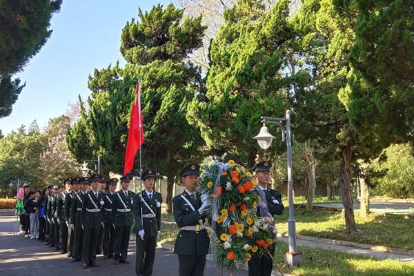 上午8点,我校国旗护卫队凤阳校区国旗班队员整体着军装列队和青年志愿者协会学生代表一行从学校出发,前往烈士陵园参加清明祭扫活动。8:30参加人员携花圈入场并敬献,而后全体脱帽默哀一分钟。在安静庄严的烈士纪念碑下,国旗护卫队队员们坚定宣誓:“人民为上,祖国至上;诚实勇敢,自律自强;奋发有为,誓做栋梁;精益求精,再造辉煌;烈士英魂,万古流芳;护我中华,万寿无疆!”字字句句,真真切切。宣誓后,由国旗护卫队队员代表陈玟围绕如何向革命烈士学习其革命精神做主题演讲,号召同学们要倍加珍惜和平的来之不易,继承革命先烈遗志,坚持奋斗;校青年志愿者协会长会长焦雅萍结合英雄事迹向广大同学发起“好好学习 不负大学美好时光”的学党史见行动的倡议。