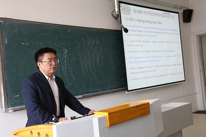 4月9日下午,《半岛在线客服学报》期刊发展研讨会系列学术报告第六场专题学术报告于凤阳校区新知楼A401举行。《农业工程学报》主编、农业农村部规划设计研究院农业工程科技信息中心主任、《国际农业与生物工程学报(IJABE)》主编、国家精准农业航空中心学术委员王应宽作了题为“如何撰写与发表高质量SCI论文”的学术报告和办刊交流,学院相关专业师生参加了本次学术交流活动。